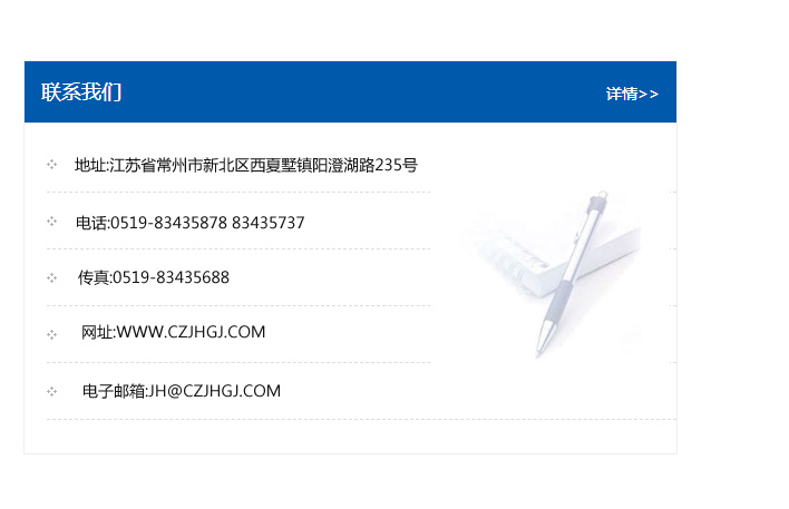 傳真:0519-83435688    郵編:213135    網址:WWW.czjhgj_com.oriimac.com    電子郵箱:JH@czjhgj_com.oriimac.com